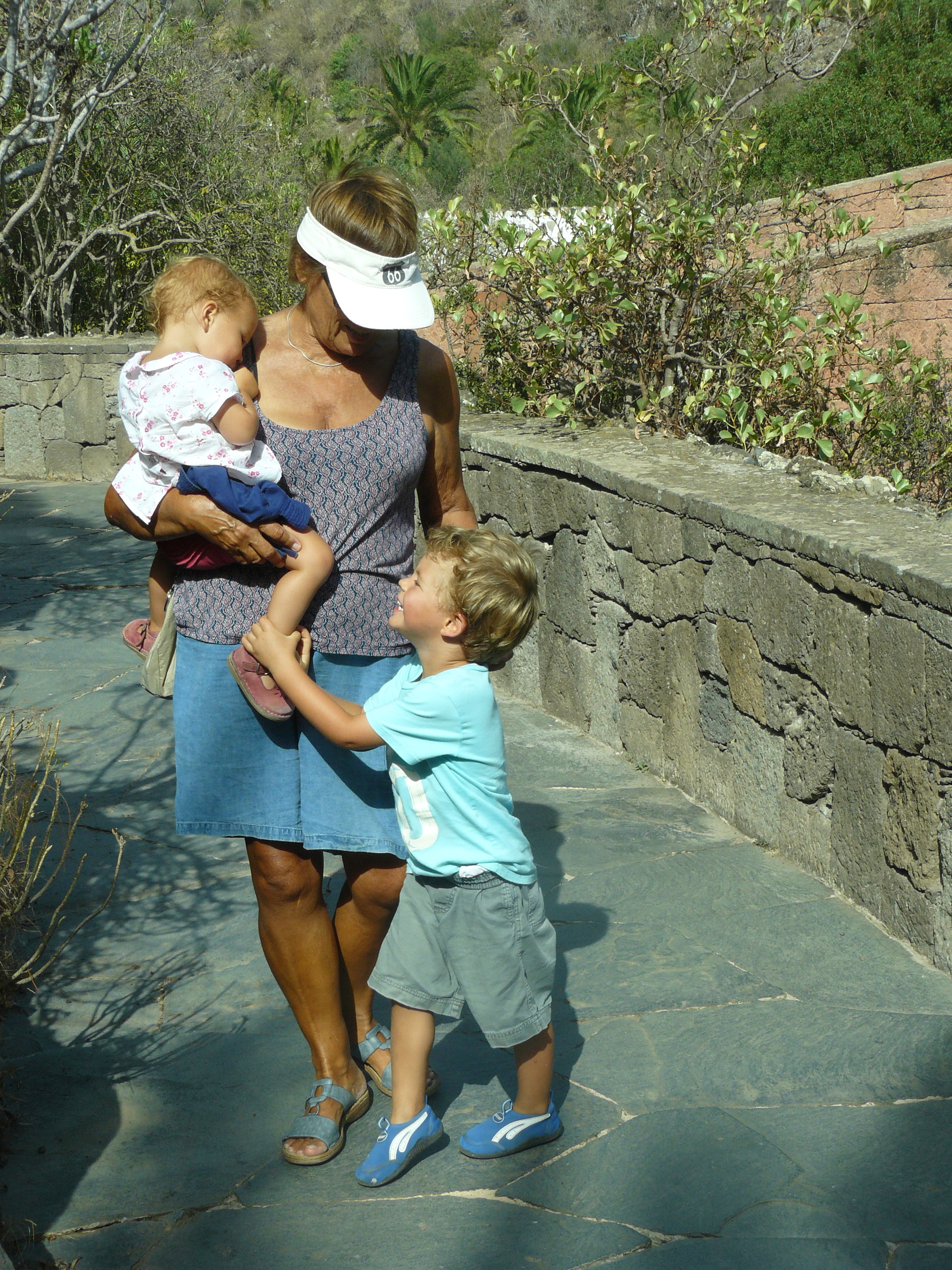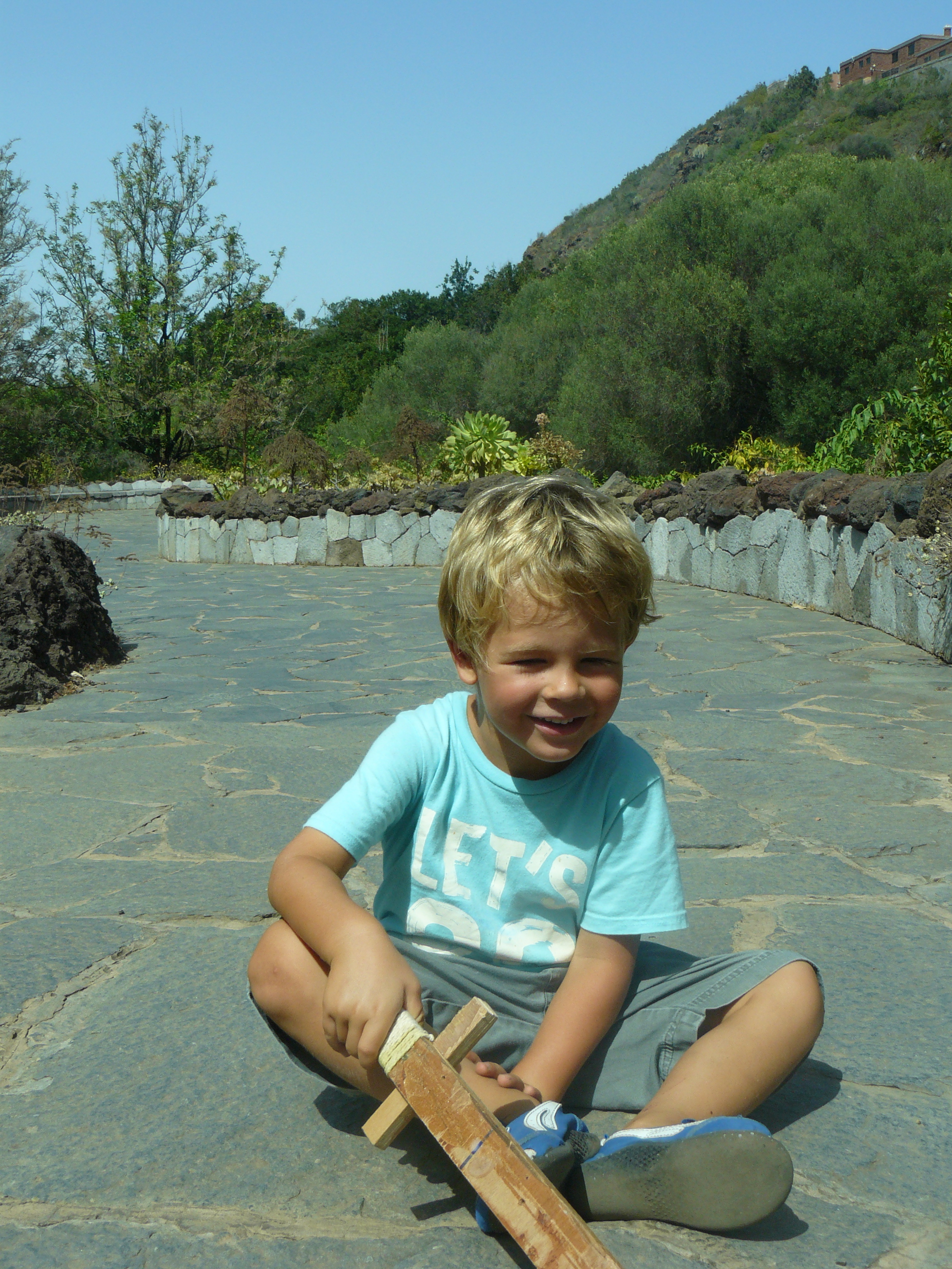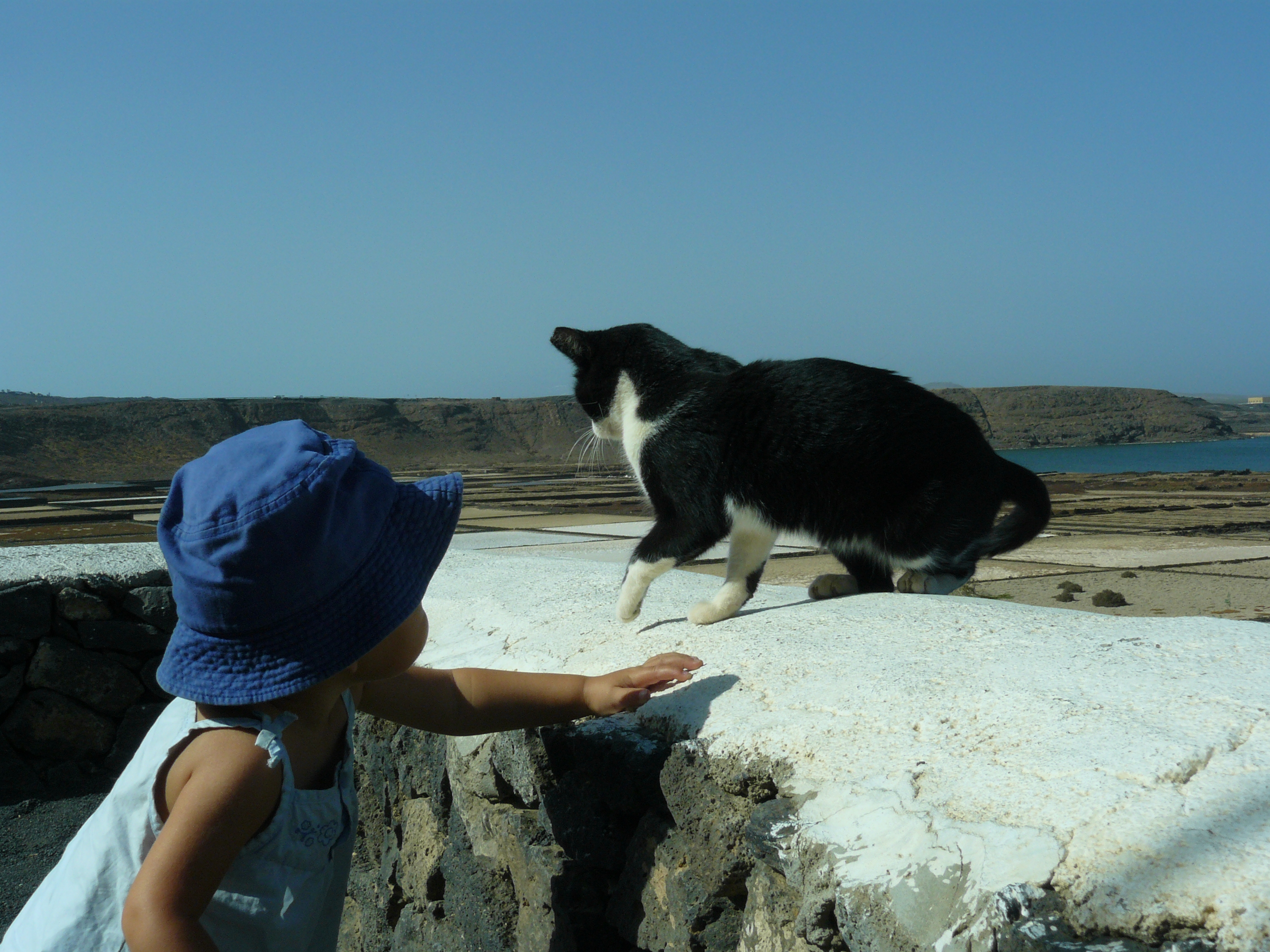Nous passons 3 jours sur d’excellents fonds de sables sur lesquels se promènent de grandes raies noires. Guilhem se régale dans les petits rouleaux et s’initie au body-board. Juste à coté, nous faisons escale à Rubicón, marina clinquante avec piscine, d’où nous partons en voiture à la visite de l’île. Tout le quart sud ouest à été recouvert par les éruptions du XVIIIème qui ont duré 6 ans ! Le parc de Timanfaya conserve intacte ce spectacle et nous traversons sur des kilomètres les champs chaotiques de lave noire. Petit intermède au musée des volcans avec une démonstration d’éruption son et lumière en sous sol qui va traumatiser pour plusieurs semaines notre Guilhem ! Un peu plus loin, nous sommes surpris de voir émerger de ce désert noir des centaines de vignes plantées dans des cônes de sable volcanique et abritées par des murets de pierre sèche pour conserver un maximum d’humidité. Anne Marie soulève les branches rampantes et effectivement les belles grappes sont bien là ! Nous achetons une bouteille au cas où le vin serait bon, même si celui ci est plutôt réputé sur l’ile voisine de Tenerife!