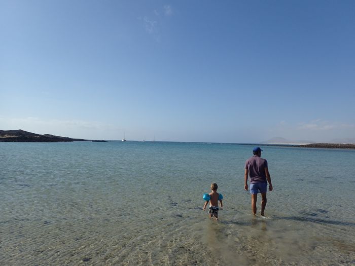 Nous descendons la côte Est de Fuerteventura jusqu’ au petit port de Gran Tarajal où nous découvrons une petite ville locale en fête, avec des attractions gonflables qui feront le bonheur des petits ! C’est avec joie que je fais mon 1er foot du voyage avec Damien et Camille et nous perdons de justesse contre une équipe de jeunes belges du bateau d’à côté !