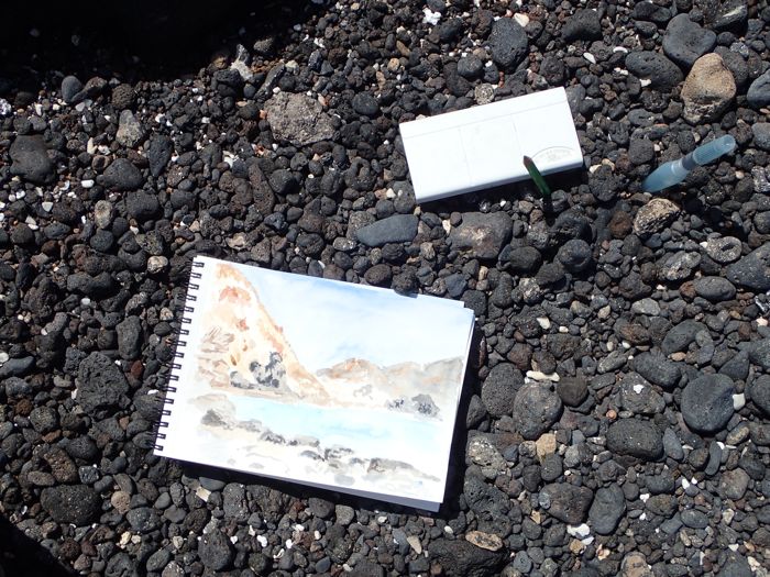 Nous mettons le cap à la pointe sud de l’ile pour punta Papagayo. Il n’y a que très peu d’abris sur ces îles et les seuls mouillages possibles en cette saison sont les faces sud ce qui nous laisse peu de choix ! Nous laissons défiler les nombreux cônes volcaniques sur tribord, il y en a plus de 300, avec au creux de leurs vallées, le sable du Sahara qui viens se fixer et donner à l’île sa teinte bicolore noir et ocre.