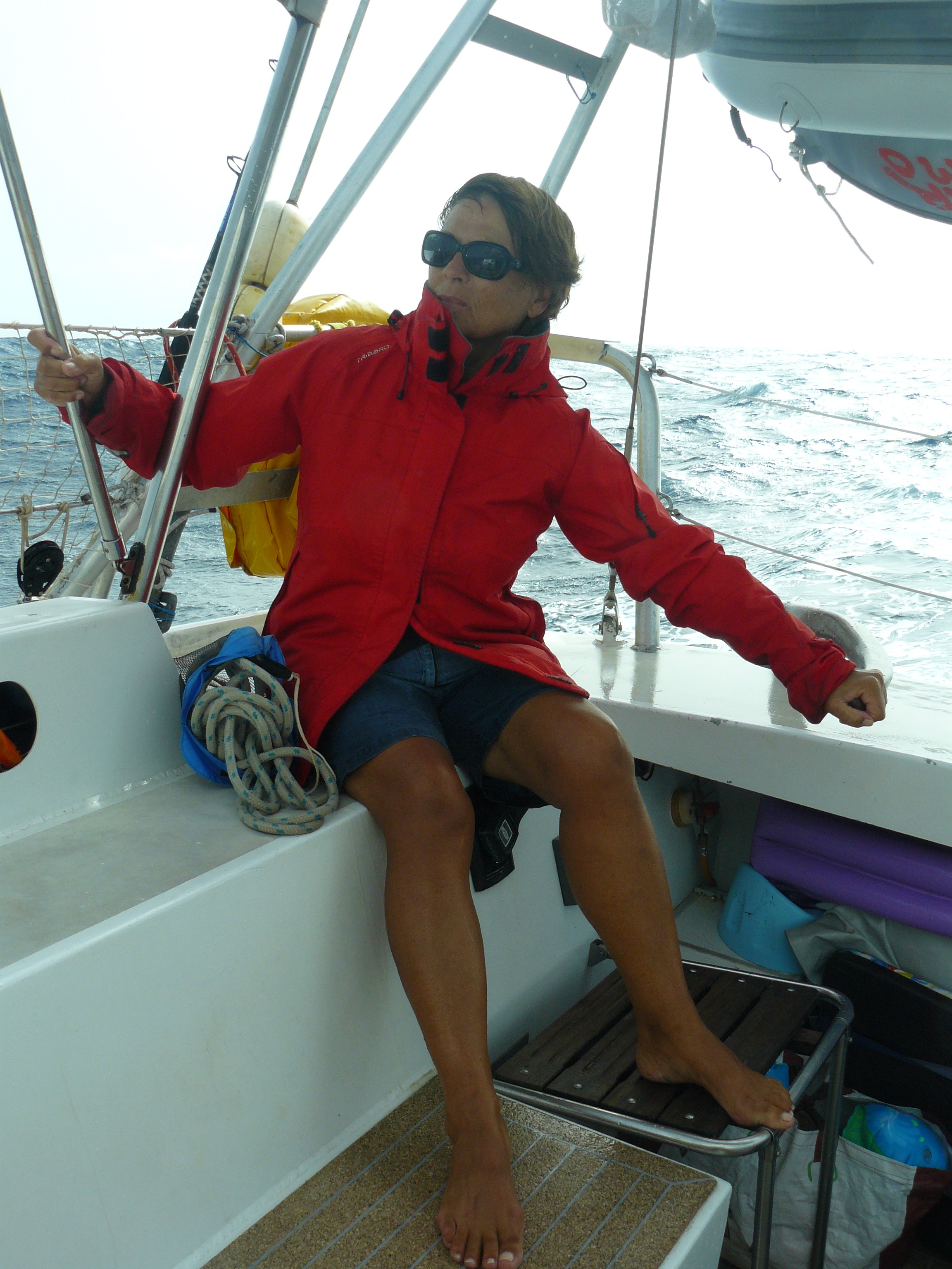 C’est un départ aux aurores (7H30), talonnant Ganéoch que nous aurons le plaisir d’avoir en ligne de mire pour cette traversée ! Nous partons avec 2 ris et la trinquette car les accélérations du vent au débouché des vallées sont violentes. Les 57 miles jusqu’à Las Palmas seront vite avalés avec plusieurs vomis des enfants, Marine assurant les 9 heures à l’intérieur, et Anne Marie à la barre pour négocier au mieux cette maudite houle de travers.