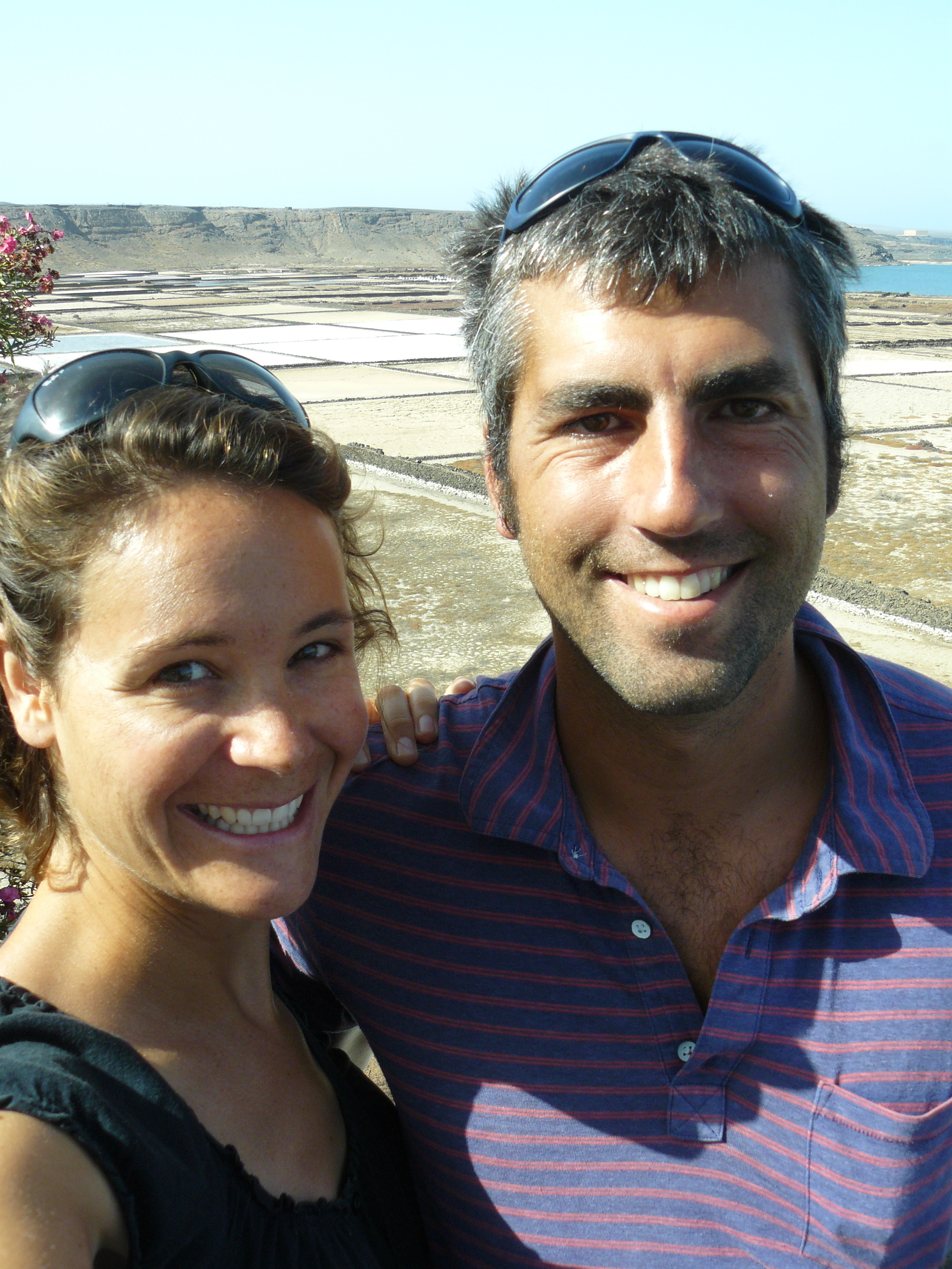 Départ pour Isla de Lobos, 6 miles plus au sud en face de Fuerteventura avec en toile de fond le défilé des cratères bordés d’immenses plages de sable, avec toujours beaucoup de vent et des hot spots de kite surf et funboard. Avec tout ce vent, le bateau se couvre de sable, du pont au moindre hauban, tout devient ocre ! Nous posons notre ancre devant un petit lagon fermé par une coulée de lave. Les nuit sont mauvaises à cause de la survente et de la houle qui rentre. Le lendemain partis en excursion sur l’île, la marée nous joue encore un tour : l’annexe qui était passée à marée haute dans le lagon et bloquée pour le retour, Guilhem et Philippine assoiffés sont obligés d’attendre 1h la marée haute! Le soir, nous nous régalons de faire le tour de l’île en courant, entres dunes et anciens salins.