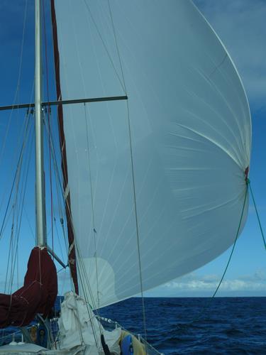 Les 15 èmes et 16èmes jours sont fatiguant, avec une hausse du vent dépassant les 20 noeuds. Le bateau remue beaucoup, il est difficile de se déplacer. Chaque geste à réaliser est fastidieux mais on tient le coup à coup de gâteaux, Nutella, films… et puis nous avons dépassé la moitié du voyage et même si elle est encore loin, l’arrivée se rapproche. Fidèles à eux-mêmes, les enfants n’ont que faire du roulis et alternent jeux, fou rires à deux, et moments calmes. Ils m’impressionnent. Je suis loin, bien loin de l’état d’esprit du début du voyage, il y a bientôt un an. Et c’est tant mieux . Puis une petite monotonie s’installe à bord. Nous évoquons de plus en plus souvent l’arrivée . Le vent souffle dans discontinuer, aux alentours des 20 noeuds. Les réserves de frais s’amoindrissent mais bon, on n’est pas a plaindre, avec les 7 bocaux mijotés par Oliv a ShelterBay, le Kilo de calissons que Violaine nous a offert, les quantités pharaoniques de bonbons que le capitain s’est acheté… !