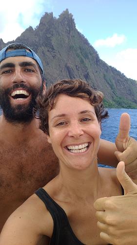 Au total, 28 jours + 6h de traversée. Nous sommes ravis d’avoir réalisé un de nos rêves, et ravis aussi d’arriver ! Puis ESPLORISTO, nos copains du Quebec arrivera 30h après , suivis de GAIA 40h après nous , et enfin SEDNA 5 jours nous !! Voici une bonne leçon pour ceux qui doutaient encore que Karemo est superbe voilier de course !! A nous les Marquises !!