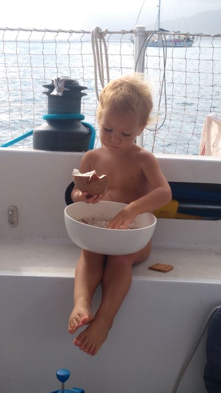 Les enfants nous ont inquiétés durant quelques jours, car ont présenté des lésions cutanées assez moches associées à de la fièvre. Grâce à l’aide de notre cousine Amélie, nous avons eu le diagnostic, mais il manquait les bons antibios. Heureusement, nous réussîmes à les trouver dans une petite îles aux allures de bidonville qui offrait un super centre de centé tout neuf ! La médecin super sympa nous fournira tout ce dont nous avions besoin. En quelques jours, les enfants étaient guéris. Ouf, nous avons eu peur. ( Depuis, ma copine Louise nous a offert 15g de Rocéphine !!!)