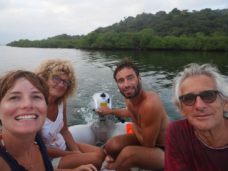 Enfin, c’est vers la fin de ce voyage dans l’archipel, que des Français ici depuis 6 ans nous confirment la présence, et aussi l’attaque de crocodile, il y a un an , dans la plus belle île ou nous mouillons. Je ravale ma salive en pensant aux nombreux bains en eaux troubles avec les petits…