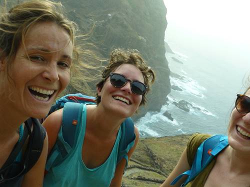 Le lendemain, après s’être perdues avec un alugher qui ne comprenait pas notre demande, nous marcherons 5h en sentier littoral, entre Cruzinia et Punta de Sol : encore un superbe moment où nos jambes ne fléchiront pas malgré l’alternance et enchainement de belles montées et descentes ! Après une petite pause au micro hameau de Fountainas, (où Anaïs rencontre le timide Tchou, qui aurait pu être l’amour de sa vie), nous arrivons, ravies, à Punta do Sol. Pour changer, nous nous récompensons de tant de sport par des succulentes caïpirinha au gingembre, une merveille pour les papilles !! Après un resto génial, accompagné de deux gars au jembé et Guitare, les plus courageux finissent au bar « coca cola » avec une bande de sympathiques gars, tandis que Steph et moi, les vieilles, allons nous coucher !