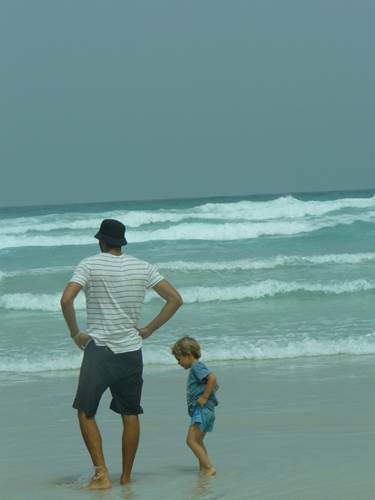 Adri et Oliv observent jalousement la musculature de « Shark », ancien champion de surf, au corps boursoufflé de muscles :) De toute manières,les locaux sont tous ainsi, passant leur temps a réaliser des exercices de muscu sur la plage !