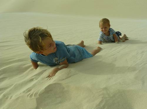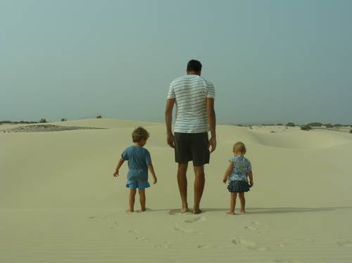 A l’initiative de Romeli, nous sommes tous allés en « aluguer » ( taxi local) visiter une partie de l’ile et avons eu la chance de voir ces dunes de sables de désert au nord de l’ile, quelques jolis villages perdus, et enfin une somptueuse page au vent avec une belle épave. Les enfants sont revenus cramoisis (de fatigue !)