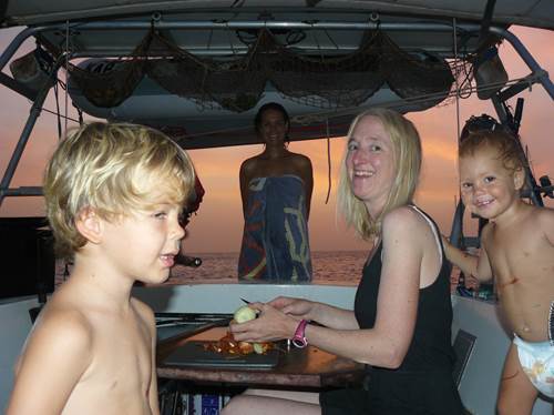 Oliv passe du temps à cuisiner plats plus délicieux les une que les autres : boulettes de coryphène et petits légumes dans son bouillon, kilos de bounty maison, bolos des cacos, ratatouille….
