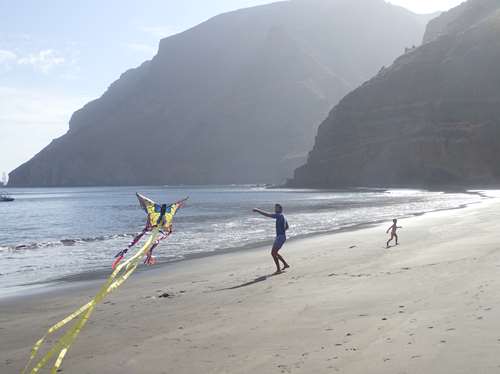 Le port de San Sebastian est tout charmant, possédant une superbe église où Christophe Colomb demandera sa dernière messe avant son premier départ. La végétation, toujours aussi luxuriante nous ravit. Le 17 septembre, nous accueillons Benjamin, notre nouvel équipier qui nous aidera à mener Karemo à bon port dans l’île de Sal au Cap Vert. Nous ne le ménageons pas, à peine le pied à bord nous larguons les amarres pour caboter au Sud de l’île. Le pauvre sera vite mis dans le bain, et subira 24h durant un violent mal de mer. Mais après une bonne nuit dehors à la belle étoile, notre jeune mousse est amariné, impressionnant ! Oliv le prend sous son aile et essaie de lui apprendre tout de la voile. En effet, sans le savoir, en moins de 48h, notre Toulousain de 22 ans a dit tous les « mots clés » pour amadouer le capitaine : « j’adore l’ail et l’huile d’olive », « ma copine fait ses études à Aix en Provence », « j’aime le surf, courir, le volley… l’astronomie », « je mange les pipas avec la peau »!!