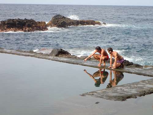 Nous découvrons un petit mouillage original, où aux pieds de grandes falaises une plage de galets devance les bâtisses en ruines d’une ancienne conserverie …transformées en pseudo centre de retraite spirituelle . Nous nous installons entre 4 murs, le temps de faire un peu de guitare, échecs, balade et pic nic ! Puis nous choisissons de jeter l’ancre à Valley Gran Rey, mouillage certes un peu rouleur, mais superbe endroit d’où nous louons une voiture pour l’aventure : une jolie balade dans la fraîcheur de la foret primaire puis baignade dans une superbe piscine naturellement remplie par l’eau de mer.